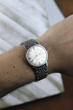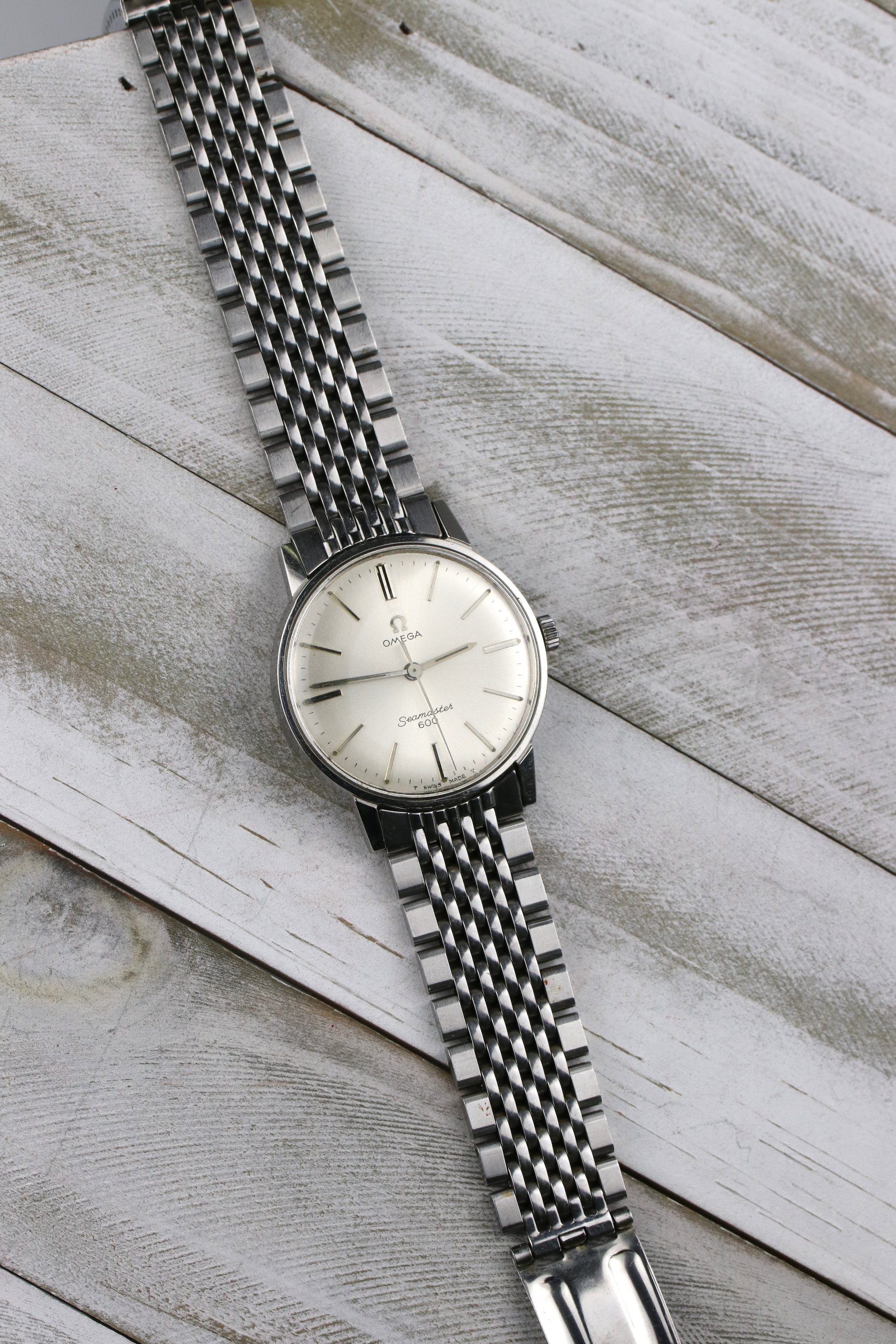 Omega released their reference 135.011 in 1962 with many different variations of this dial. This here is a silver dial with baton indices and a applied logo. Clean lines on the case and the lugs in the original, non polished state. I'd say it's a quintessential Omega piece for an excellent daily - all arounder wear. It's on the original beads of rice bracelet. Powered by the manual winding Omega cal. 601 that holds time accurately. Happy to answer any questions and provide more pictures!