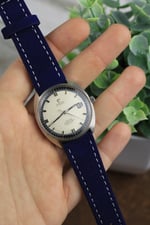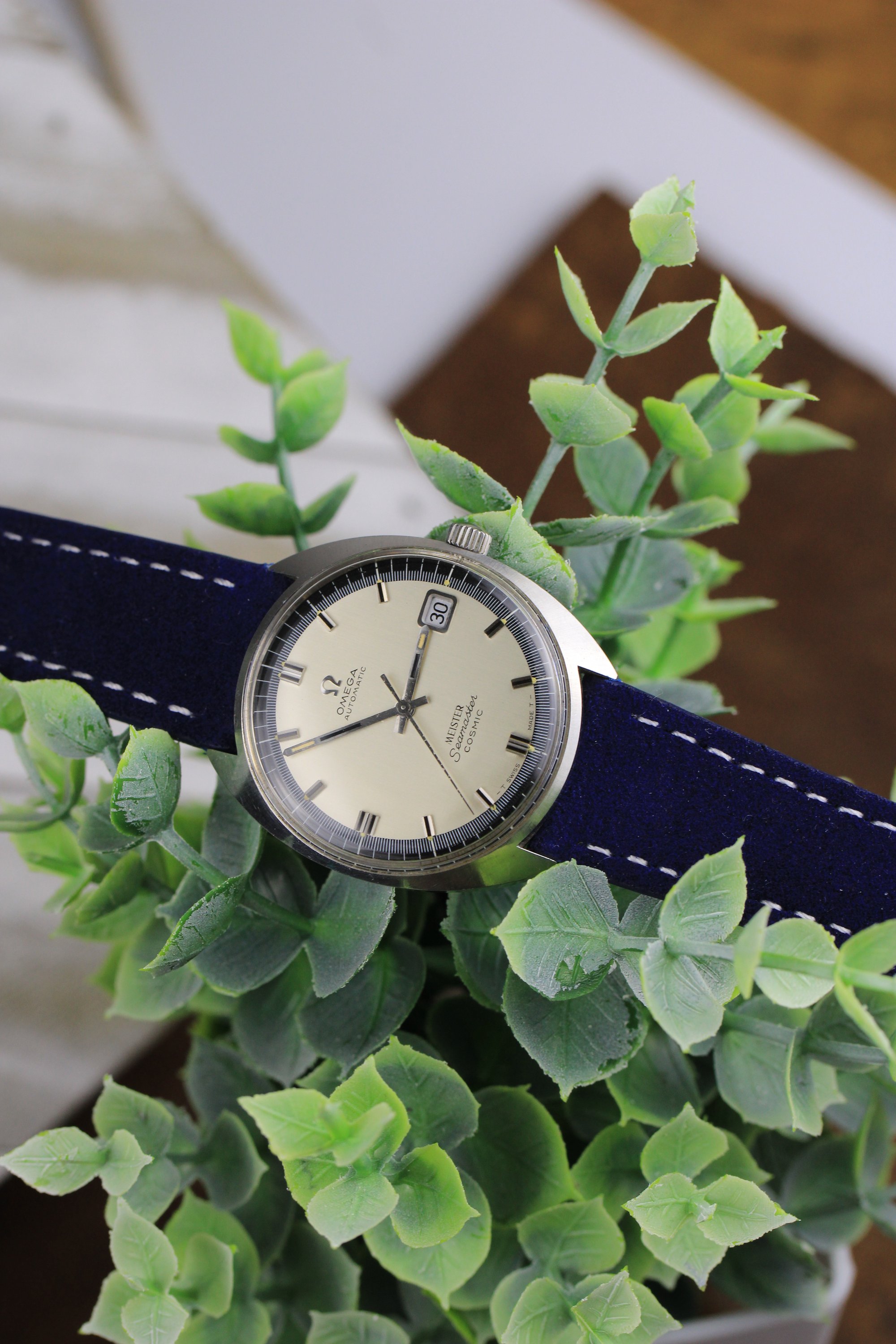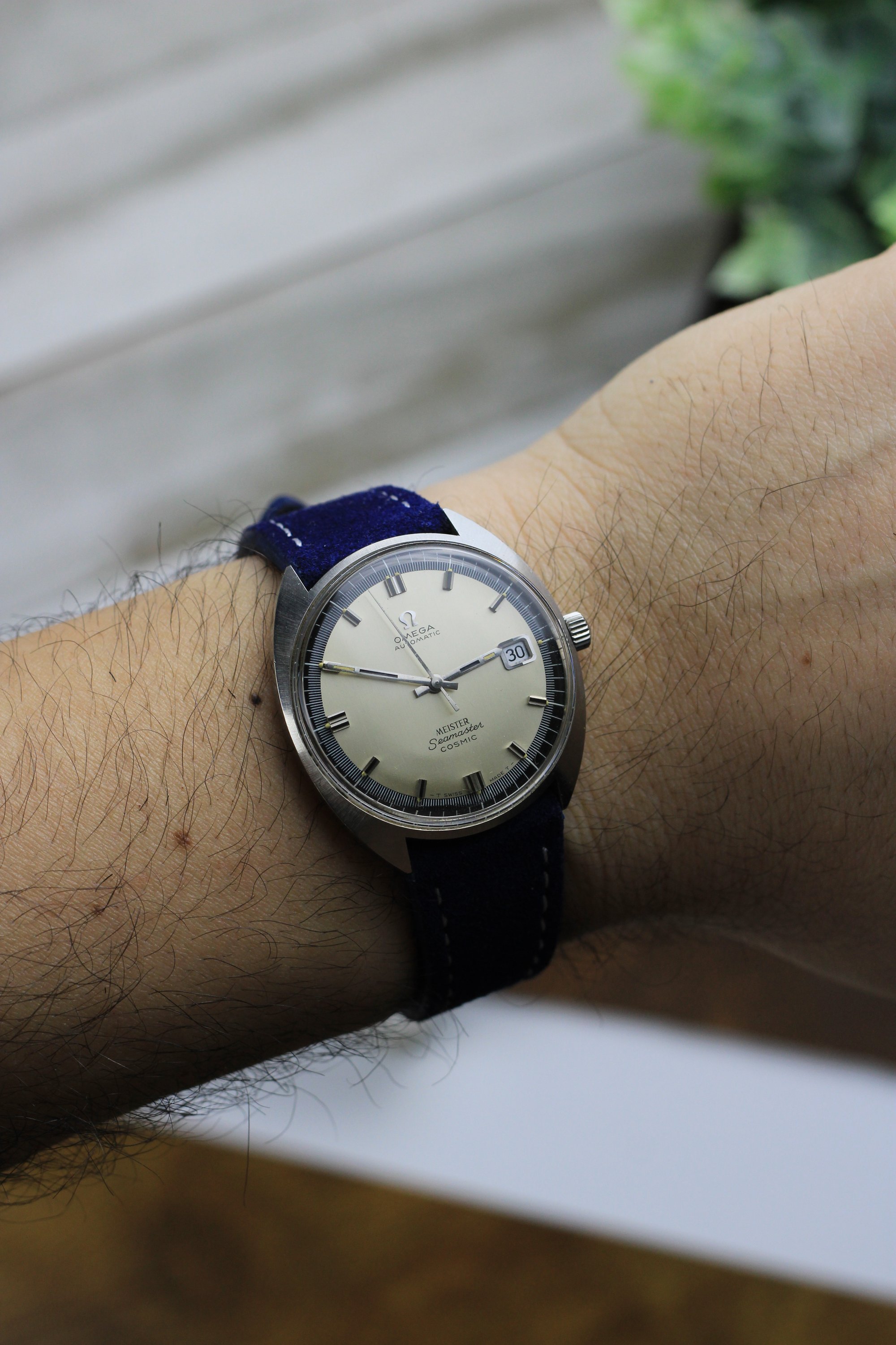 This super clean Seamaster Cosmic checks all the boxes for a versatile everyday watch. It features a creamy silver dial with a blue chapter ring and carries the rare double-signed "Meister" dial — a reference to Meister, the prestigious Zürich-based jeweler that served as a trusted, exclusive retailer receiving pieces directly from Omega. It's fitted on a blue suede strap with the original buckle, and the original bracelet will also be included, though it's no longer in wearable condition. Powered by the 565 Cal. automatic movement that has the push pull date complication. Happy to answer any questions and provide more pictures!