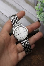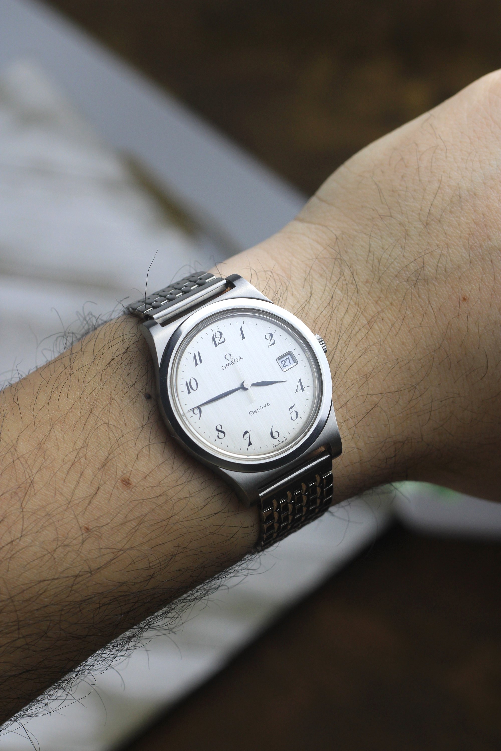 Words feel unnecessary here - this Genève speaks for itself. Stunning Breguet numerals, thin leaf hands on a slightly textured dial. Polished bezel with brushed case. Paired on a NOS vintage straight end bracelet. Freshly serviced 1030 Cal. manual winding Omega movement. Happy to answer any questions and provide more pictures!