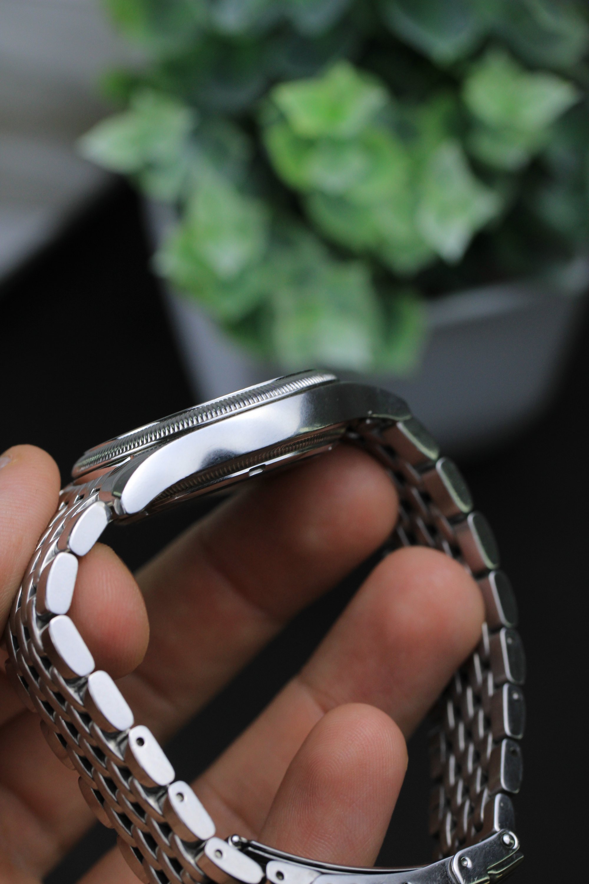 Please note: That the images presented on this listing are captured using a 100mm macro lens camera. This specialized lens allows for extremely detailed close-ups, As a result, some images may show dust specs and hairline scratches that are impossible to see with a human eye. It's important to understand that these imperfections do not affect the overall quality of the time piece. We strive to showcase the true essence of the subjects we photograph while providing an honest representation of the photographic process.