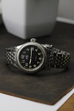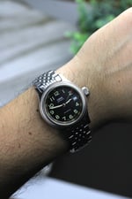 Here is an Oris Big Crown Commander 7482B from the turn of the century. Black dial with large, luminous Arabic numeral. Has a warm-orange seconds track outside of the dial. Red tipped seconds hand that adds a pop to the black dial. Oris started having the red rotors in the beginning of the 2000s - this being one of the first models to have the red rotor. It's on the original Oris bracelet - gives it a clean, sporty look that wears well both casually and dressed up. A date window sits neatly at the 3 o'clock position, adding everyday practicality. Powered by the automatic Oris 633 Cal. Happy to answer any questions and provide more pictures!